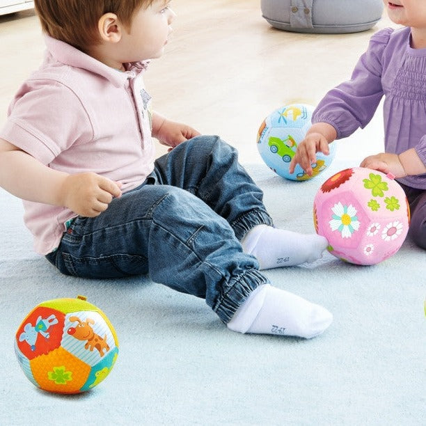 Your little sport will sure get a 'kick' out of this cushy play ball! Kick it, roll it, throw it! No matter how you spin it, ball play provides key benefits that are an important part of the developmental progression such as improvement of motor skills, hand-eye coordination, and timing. Soft ball that easy for little hands to grasp.