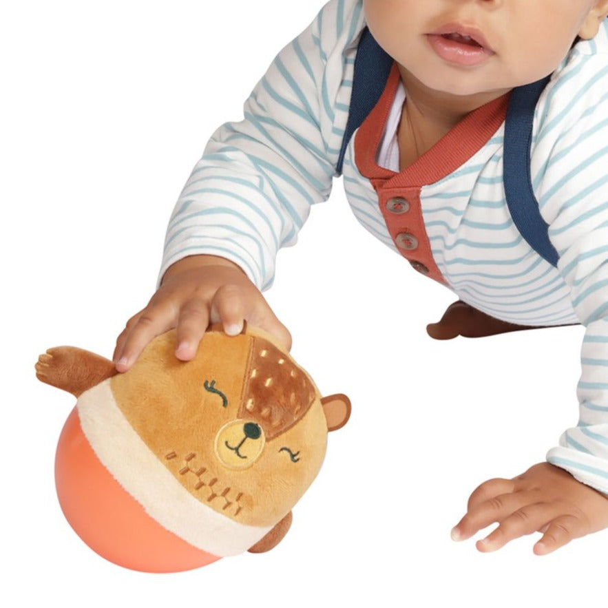 It wobbles, it bobbles and bounces without fail! The Wobbly Bobbly Bear has a one-of-a-kind design that features a weighted soft silicone base for optimal wobbling and bouncing that always wobbles back to an upright position. Its unique silicone base offers a soft squishable texture that's safe for baby play. This silicone design is unlike any other wobble toy on the market. The upper half of this little bear features plush fabric with embroidered facial features and a bell inside for added enjoyment. Encourages cause and effect learning and motor development.